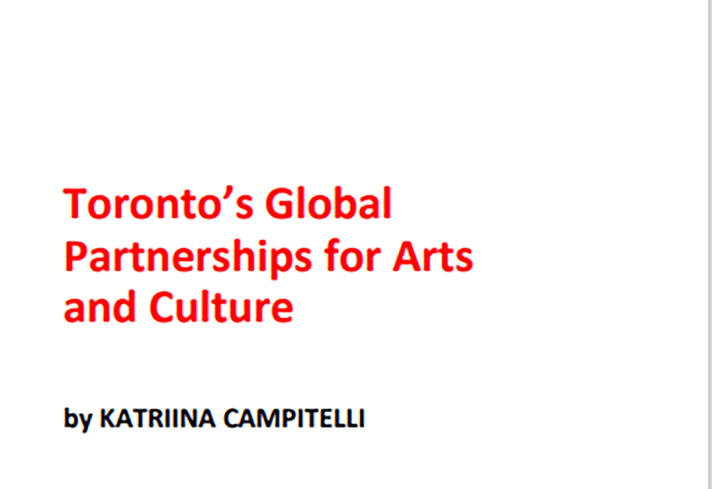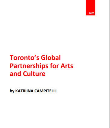 NACDI Collaborator Katriina Campitelli presents her essay “Insights on Cultural Diplomacy: Toronto’s Global Partnerships for Arts and Culture.” This essay, which was prepared for her Master in Cultural Diplomacy at the Università Cattolica del Sacro Cuore, analyzes the current state of Toronto’s International Alliance Program and explores opportunities for improving the functionality of the City’s global affairs. Katriina advocates for shifting towards international dialogue and cultural ventures, instead one-way proclamations, in order to truly demonstrate Toronto’s potential as a global city.